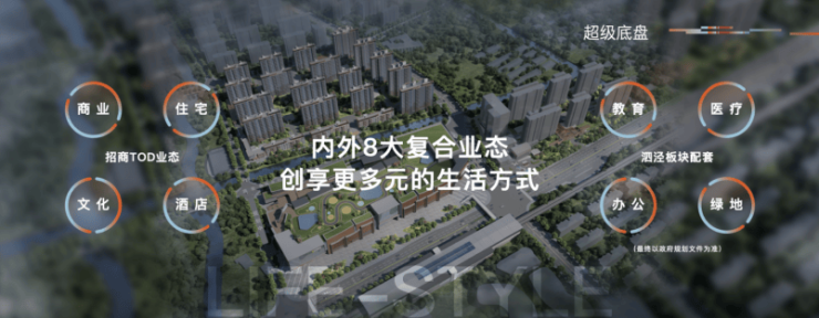 招商时代潮派是9号线泗泾站约50万方的TOD项目,拥有商业、住宅、文化、酒店等多元业态。同时,大城外部还链接教育、医疗、办公、绿地等配套。