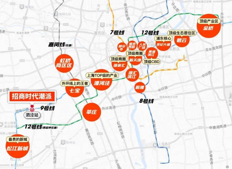首先,这条轨交汇聚了上海东西最重要的两大产业: 漕河泾&金桥。沿线还有徐家汇、世纪大道等顶级CBD。