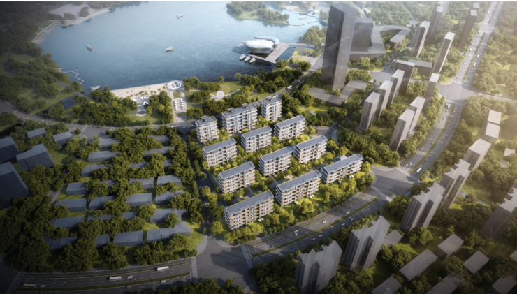 湖上云庭是太仓首个第四代住宅项目,由至城地产开发,位于科教新城书院路北、鹊桥路东地块,天镜湖南侧。项目总建筑面积约8.1万㎡,规划12栋8-11层低密住宅,主打175-290㎡的立体生态叠墅产品,总户数246户,容积率仅1.2,绿地率达37%,得房率最高达91%,营造出静谧舒适的居住环境