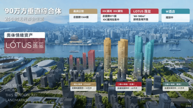 众安IOC潮鸿由众安集团(HK.0672)旗下恒力企业管理(杭州)有限公司开发,定位为杭州奥体核心区一线江景商业大平层,为40年产权、不限购不限贷的塔尖资产,非普通住宅。项目已于2025年6月交付,为现房状态,可即买即住。主力户型为建面330–630㎡精装大平层,主力面积段336–402㎡四至五房,层高4.2米,采用全玻璃幕墙+270°环幕江景设计,得房率未公开但空间利用率极高,精装标准达1.2万–1.5万元/㎡,标配嘉格纳厨电、劳芬卫浴、大金中央空调、旭格系统门窗、汉斯格雅花洒,物业由全球TOP3物管高力国际运营,提供108项金钥匙服务,对标华尔道夫酒店。