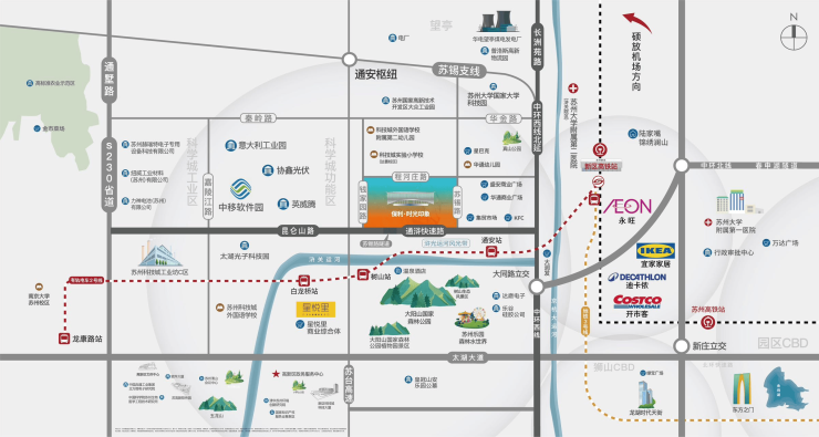 有轨电车2号线 : 树山站 步行仅5分钟,直达科技城核心区、太湖科学城,15分钟到狮山商圈。