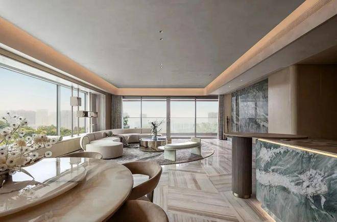 主力户型:建面约119-136㎡四房,全屋配备西门子厨电、科勒卫浴及地暖系统,设计有超7米瞰景阳台