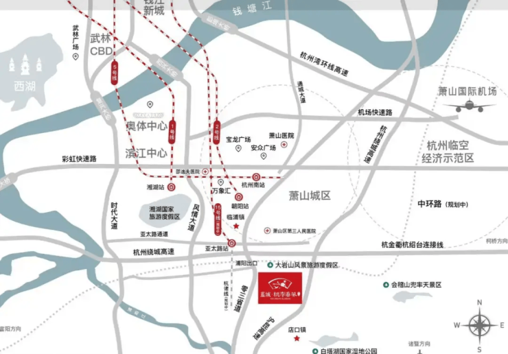 萧山第二高级中学、湘湖中学 车程10–15分钟