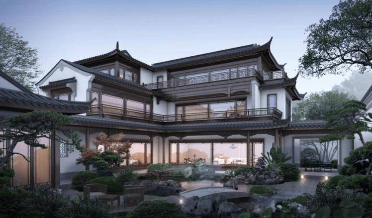 项目秉承苏州桃花源的纯正血统,由非遗“香山帮”匠人运用传统工艺精心打造,从曲折回廊、腾空翘角,到叠山理水、精细瓦铺、叠石拟水造涩浪等细节,无不彰显着工匠大师们的技艺与智慧,完美复制了中式美学的韵味与纹理,散发着浓郁的东方古韵。