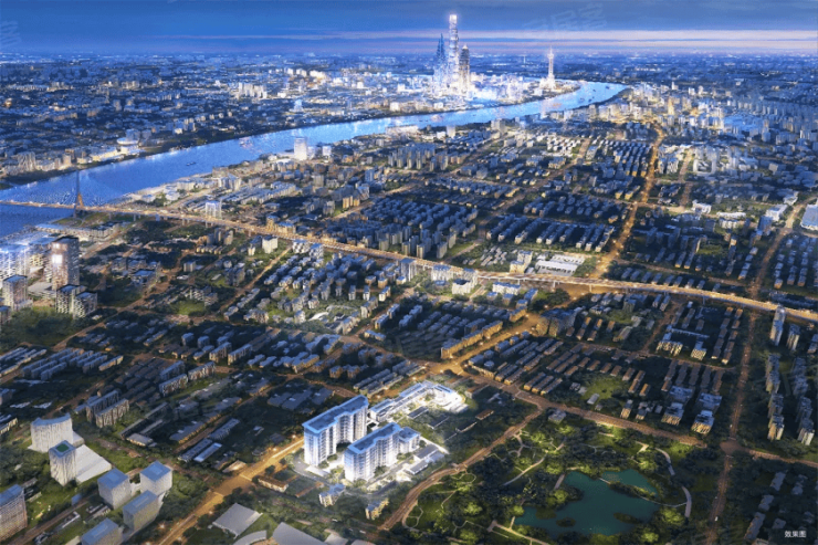 黄浦江岸线 : 项目南侧仅200米 , 无遮挡江景视野 , 高区可眺望陆家嘴三件套、杨浦大桥、东方明珠 ;