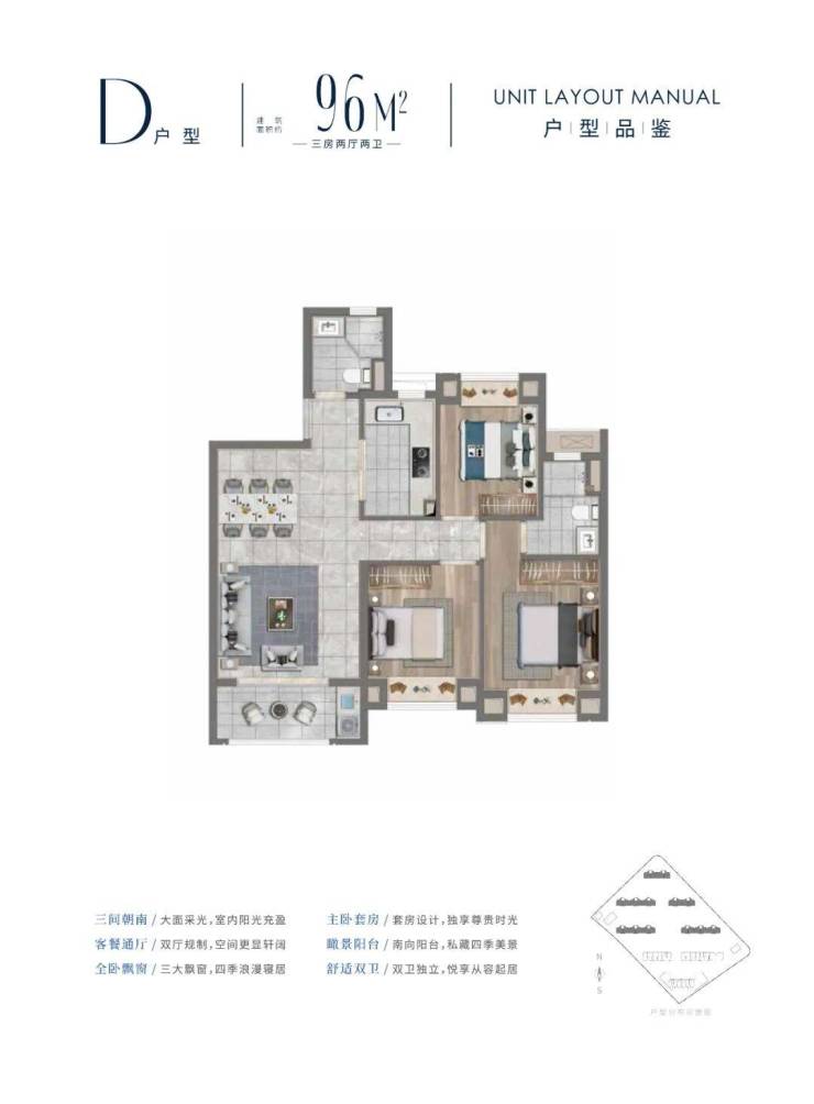 🏠产品介绍:在售面积约84-95㎡三房
