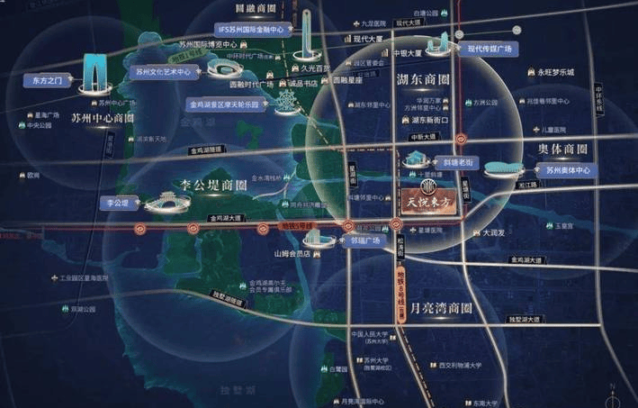 象屿天悦东方地处园区核心区域,横向金鸡湖大道通达东西全城,中新大道经金鸡湖隧道快速直达湖西苏州中心商圈,纵向星塘街、星湖街连通园区南北。此外,5号线与在建的8号线双轨合一,轨交“斜塘站”距小区约200米,业主出行便捷无比。