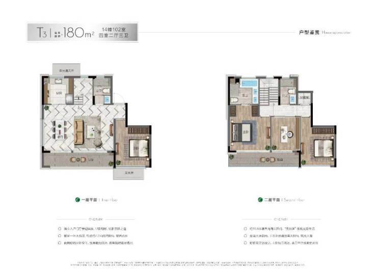 上叠(188–195㎡):顶层设环绕式星空露台,可俯瞰白沙茶山与西湖高尔夫球场,推窗即入画境,私密性与仪式感并存。