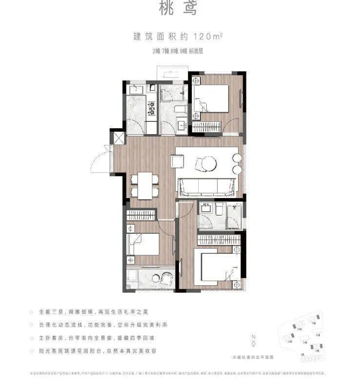 三面南向,独立主卧卫浴空间,L型转角飘窗提升舒适度