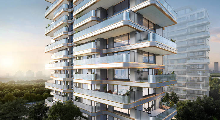 项目交付标准为精装修,选用SMEG、古洛尼、汉斯格雅等国际精装品牌,全屋搭载华为鸿蒙智家系统,配备AI智能管家与全屋软水