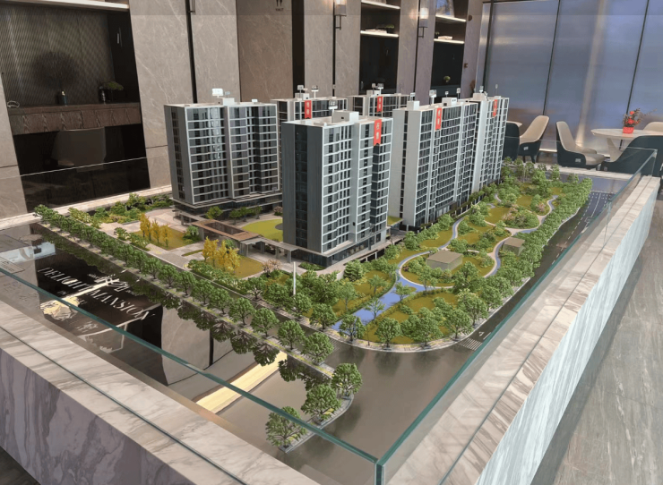 项目生态价值无直接江景 ,但 “双园环绕”+高绿化率+中央草坪在内环外高密度区域属稀缺生态配置