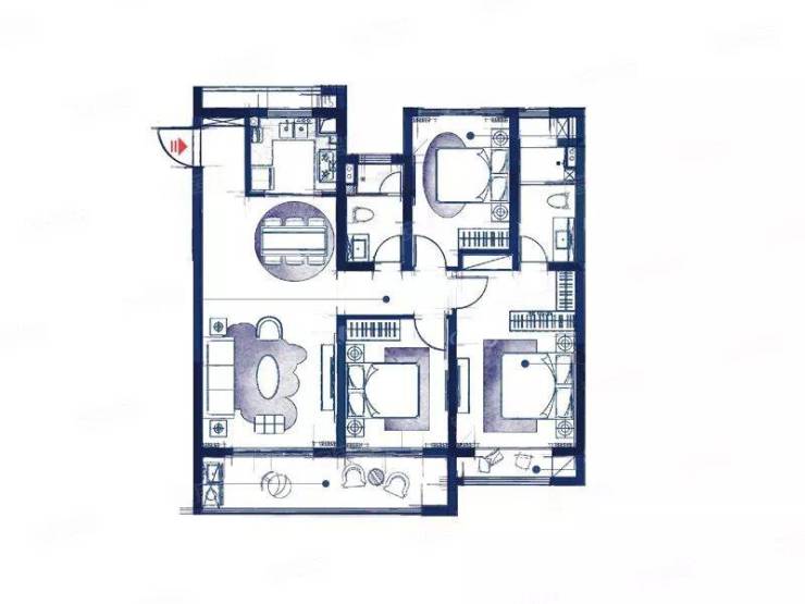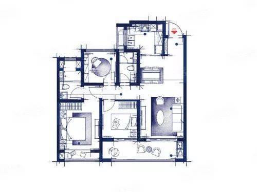 99㎡三房两厅两卫:总价约227.7万元/套,得房率高于市面同面积段产品,双卫设计实用性强