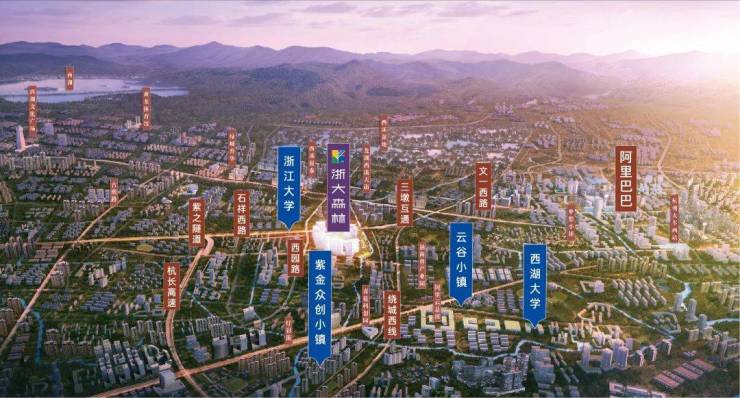 同时也云集了诸多产业集群,如阿里云谷、独角兽产业园、菜鸟总部等,同时作为浙江大学产学研最重要的实践基地之一,距离浙江大学紫金港校区西门仅1公里;所以整个项目可以说是如众星捧月的宠儿。