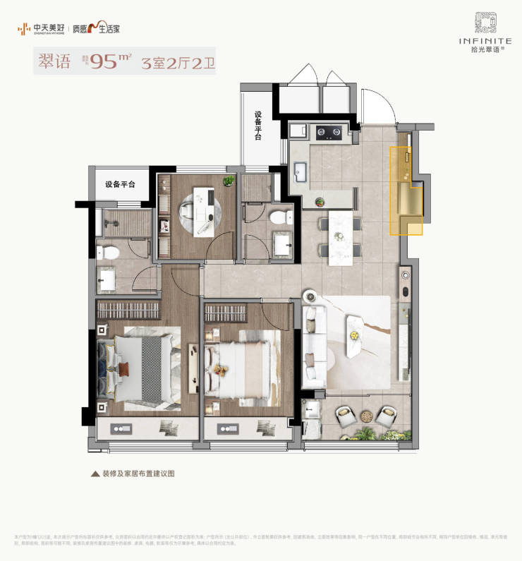 1.刚需家庭:95㎡户型总价可控,得房率高