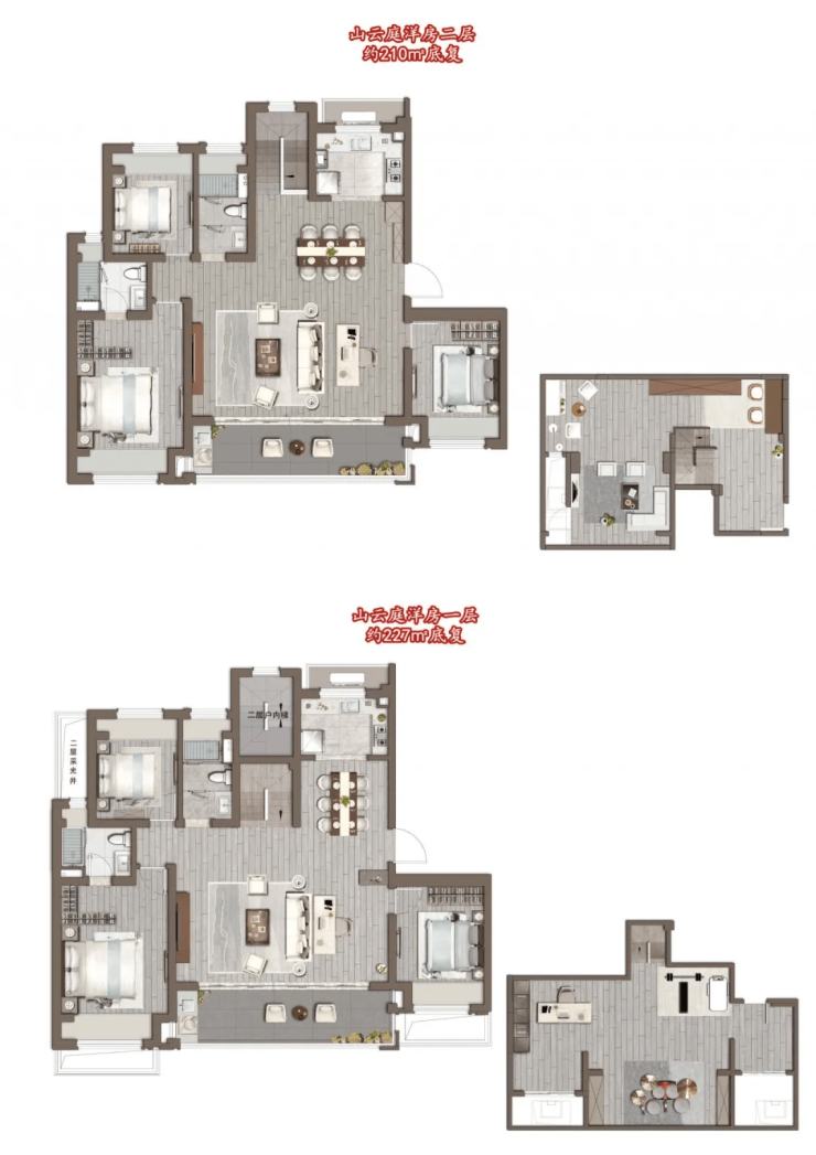 主力户型涵盖126-227㎡宽幕洋房与190-210㎡山水叠墅,得房率约81%-86%。洋房约7米超大横厅搭配全景阳台,采光视野俱佳,126㎡四房设计适配刚需与改善;叠墅配备挑高4.85米地下室与私密电梯入户,可打造影音室、酒窖等个性化空间,满足高端家庭的多元需求。精装交付标配新风系统,细节处尽显人文关怀。400 998 3632山云庭营销中心电话