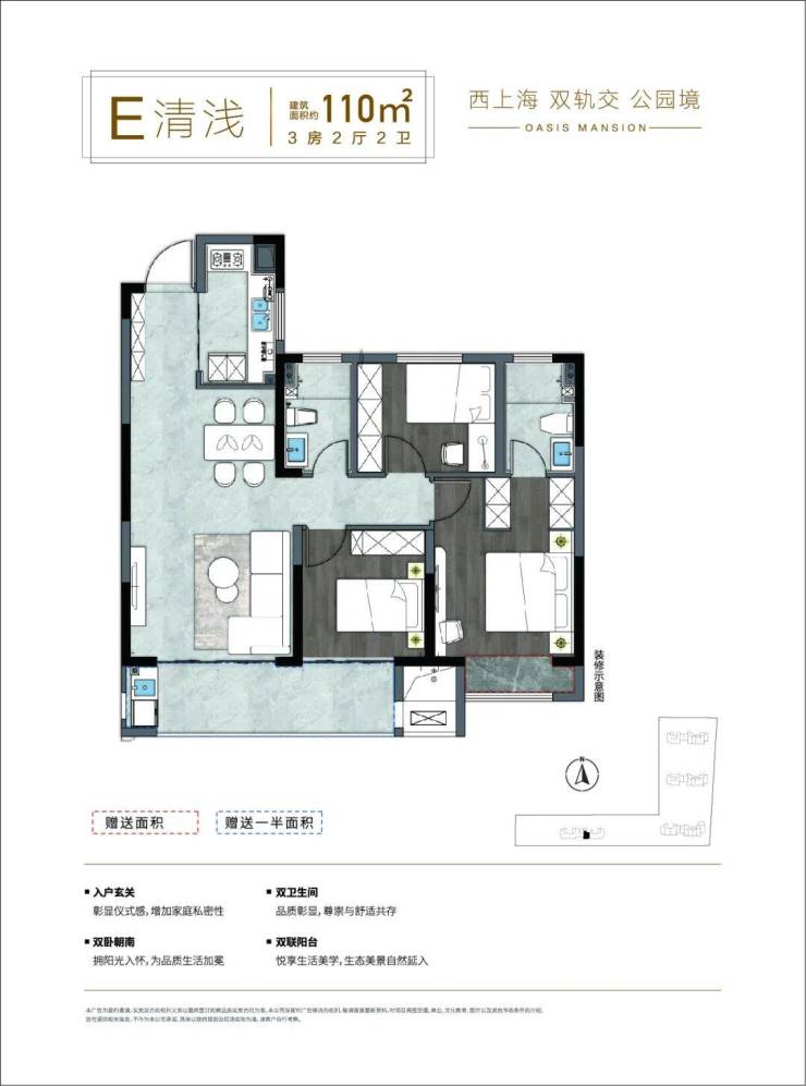 建筑面积约80㎡–110㎡装修美宅,配备新风、中央空调(“中空”建议写为全称),细节打磨品质生活。
