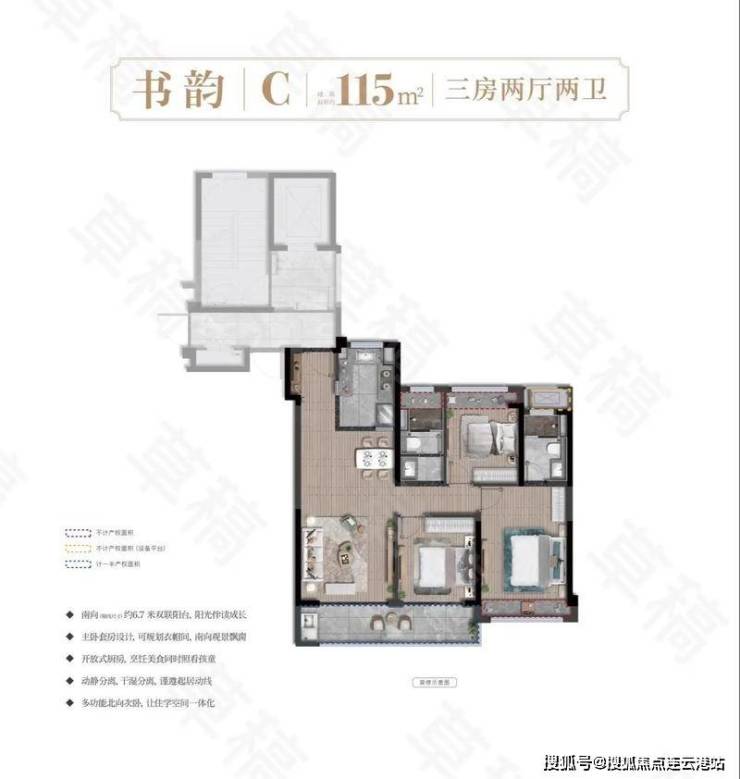 115㎡三居:单价约17000-19000元/㎡,总价205万起