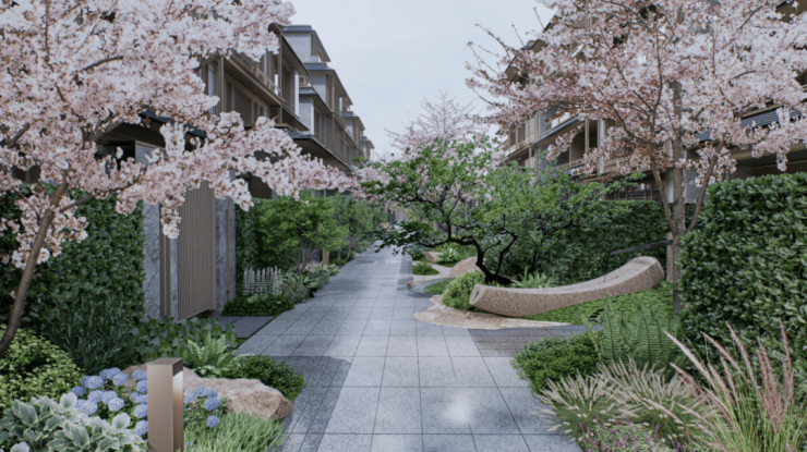 在迎龙观月,每一处的设计都在诉说着“归家”的意义。从精奢的门头到精致的植物组团,再到入户花镜和特色对景,自然与生活的美好融合无处不在。