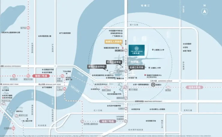 天阳湖与舍坐落于钱塘区政务核心区,江东一路与青六北路交叉口,地理位置优越。项目距离地铁7号线江东二路站仅约80米,是名副其实的地铁口楼盘。作为地铁始发站,早高峰无需排队、无需换乘,1站直达龙湖江东天街,2站至宝龙广场,5站换乘8号线,15分钟直达武林广场,30分钟覆盖钱江新城、萧山机场,通勤效率极高。此外,项目周边还有江东大道、青六北路、之江东路等多条交通干道,自驾出行同样便捷高效。