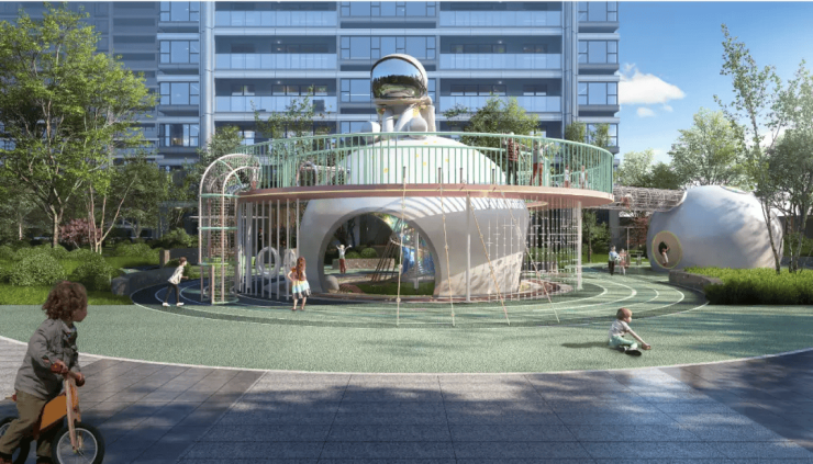 公共空间:社区内设星光泳池、架空层泛会所、林荫步道、儿童活动区,打造“归家即度假”的生活场景。