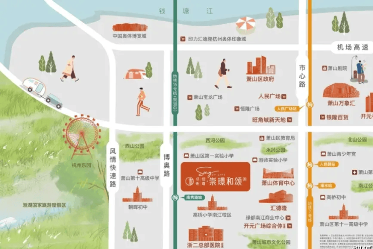 保利恒尊崇璟和颂府位于萧山区潘水路与崇化路交汇处,地处市心路与博奥路双城市主轴交汇地带,是杭州江南岸的交通大动脉。项目直线距离地铁2号线潘水路站仅约800米,步行约10分钟即可到达,6站速达滨江核心区,8站抵钱江世纪城,9站达钱江新城,通勤时间控制在25分钟内,完美适配滨奥、钱江新城上班族的通勤需求。此外,项目周边还有市心路、博奥路、蜀山路三轴环绕,彩虹快速路直连机场高速,25分钟即可抵达萧山国际机场,长三角跨城出行高效便捷。同时,703路、715路、728路等8条公交线经停“潘水路崇化路口”站点,覆盖萧山老城、城厢、杭州南站等核心区域,无车家庭出行同样便捷。未来,规划中的地铁15号线南秀路站直线距离约1公里,预计2028年通车,将进一步强化项目南北通达性,拉升区域价值天花板。