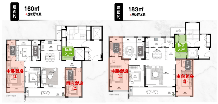 主力户型:建面约98-143㎡三至四房,采用"宽厅+双卫"设计