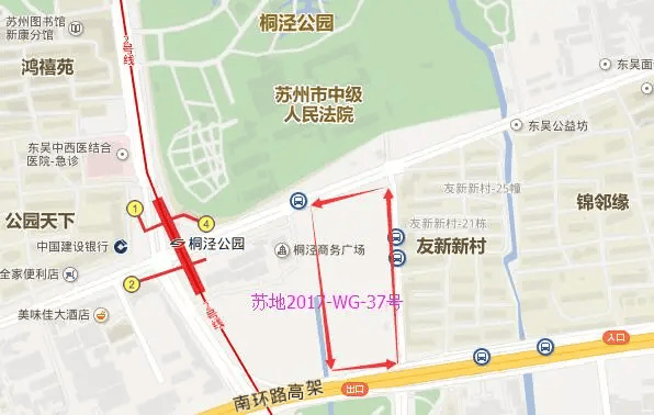 永威姑苏悦位于姑苏区解放东路与友新路交汇处,是苏州古城核心腹地罕见的低密住宅项目。项目总占地6.47万㎡,总建面15.2万㎡,由南北双地块构成,容积率严格控制在1.5–2.5之间,绿化率约20%–32%(多源数据交叉验证取中值26%),在寸土寸金的姑苏老城中,堪称“呼吸式社区”的典范。