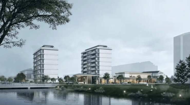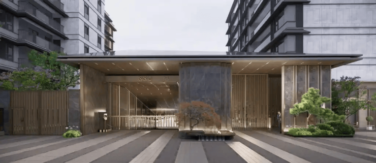 小区内:五进九景园林体系,灵感源自《西园雅集图》,串联入口门厅、海棠影壁、曲水廊桥、静思亭台、林下茶寮等节点,营造“一步一景,移步换景”的文人游园体验。