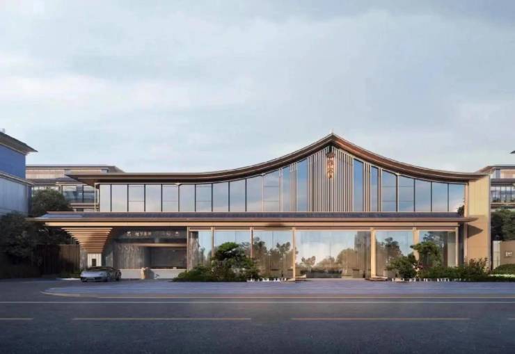 设计:新宋风院墅,铝板、石材、LOW-E玻璃打造简雅立面。