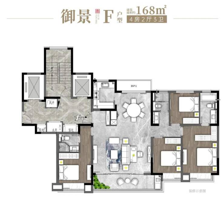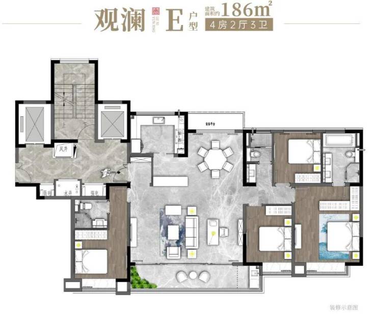 主力户型为建面约138-186㎡的4居室,具体如下: