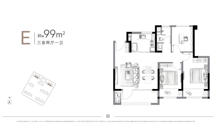 99㎡ 17,900–18,200元/㎡ 177万–180万元 3室2厅1卫,南向双阳台,得房率约81%,市场最低门槛