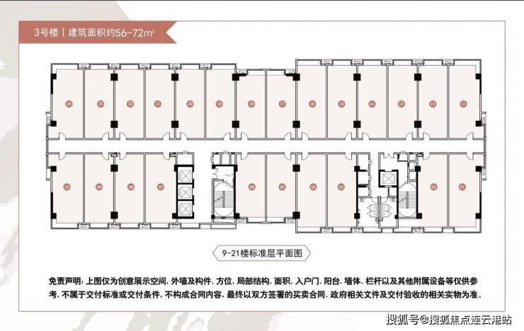 LOFT公寓:56-72㎡主力户型,层高3.6米(平层)及4.49米(挑高),得房率77%