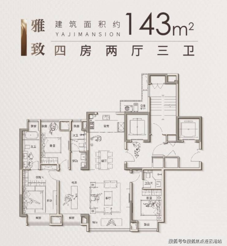 位于 2#、5#、9# 楼栋,同样为 4 梯 4 户,层高 3.10 米,17 层小高层,总价 345 - 390 万。此户型更加宽敞大气,主卧套房配备独立卫浴与衣帽间,彰显主人尊贵身份;多个观景空间,让窗外美景尽收眼底。