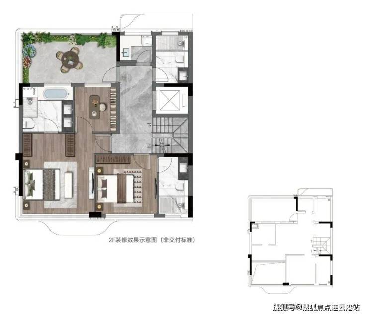 全精装交付,非毛坯,标配中央空调+新风系统+地暖+智能净水,层高3.3米,2梯2户,独立入户庭院+地下室