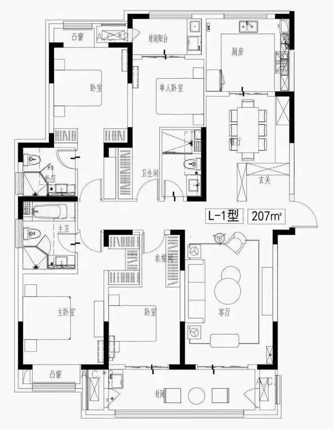 在售户型:建筑面积约74-207㎡,2梯3户(一房,四房)