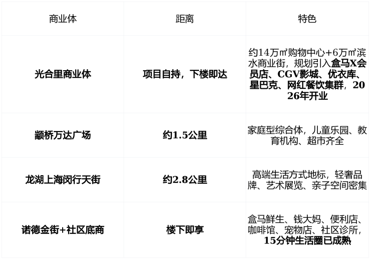 🛍️ 商业:自带20万㎡“光合里”超级商业体,下楼即享城市级繁华