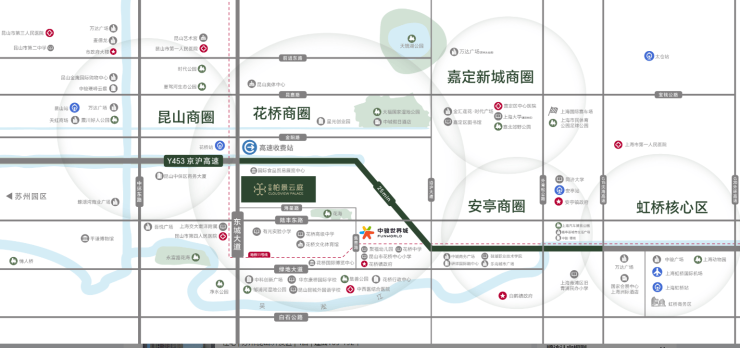 柏景云庭的区位优势,是其打动购房者的核心密码。项目位于花桥国际商务区核心板块,紧邻京沪高速花桥出口,驾车1.5公里即可上高速,25分钟直达上海虹桥商务区,轻松实现“工作在上海,生活在花桥”的双城模式。