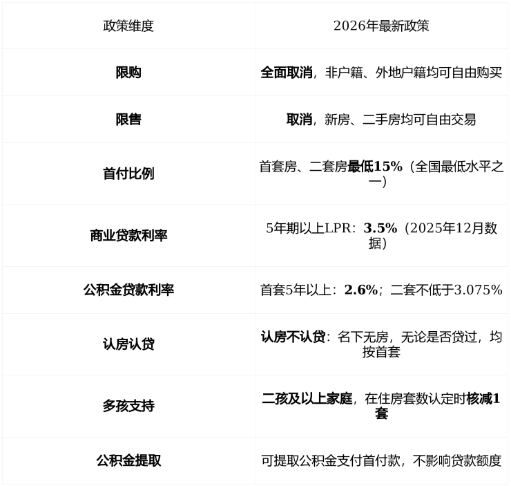 政策窗口 :2026年苏州 全面取消限购限售 ,首套房首付 低至15% ,公积金贷款利率 首套5年以上仅2.6% ,二孩家庭可核减一套住房认定。