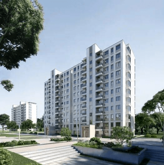 建筑风格为现代东方建筑形式,以建筑体块简洁、色彩运用稳重大方、注重细部处理及比例的处理手法,形成现代、简约、精致的立面造型。