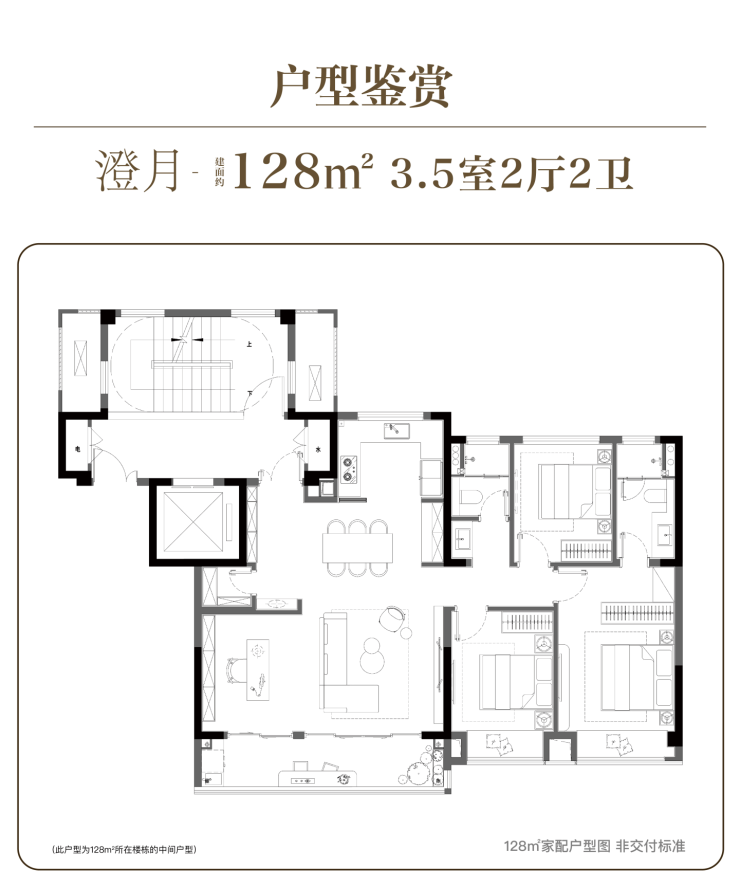 128㎡四室两厅:热销主力户型,南北通透,四房设计满足多代同堂需求,得房率高达83%。