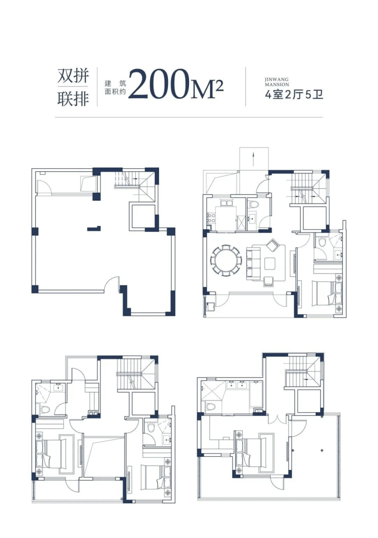 产品类项:建面约200、230m²藏品双拼/联排(首开联排)