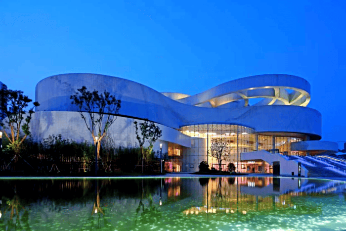 昆山文化艺术中心,犹如一座永不打烊的艺术乐园,坐落于昆山市前进西路1850号。作为昆山市唯一的专业演出艺术场馆,其建筑由著名建筑大师崔恺担纲设计,以昆曲和并蒂莲为灵感,沿水体曲线舒展,尽显水乡“神韵”。71255.8平方米的建筑空间里,将大剧院、会议中心、影视中心等功能完美融合,成为集文化、休闲、娱乐等多种功能于一体的综合性文化地标。