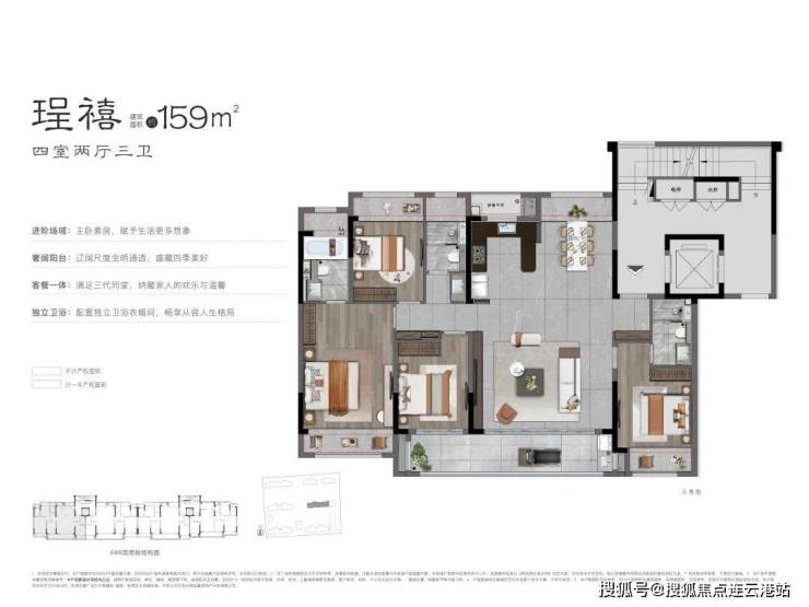 至于建筑面积约159㎡的户型,完全是领跑狮山大尺度改善的存在。