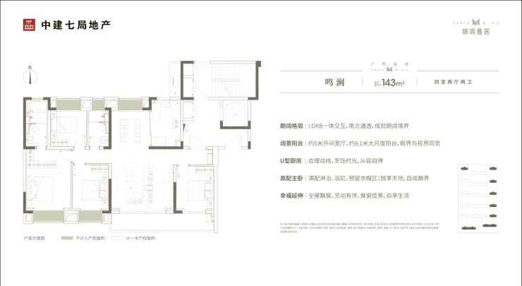 主力户型:建面约143㎡、170㎡、203㎡,得房率约85%左右