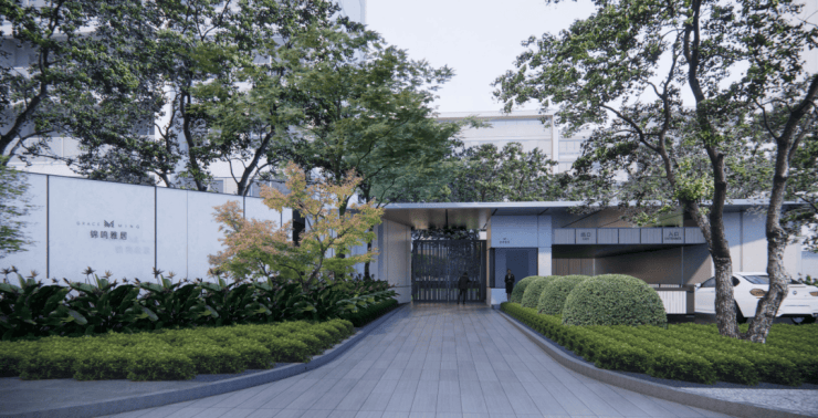 设计理念:社区景观融入“静奢”理念,强调自然与生活的融合;建筑采用极简风格,结合大面积落地玻璃窗和轻盈立面线条