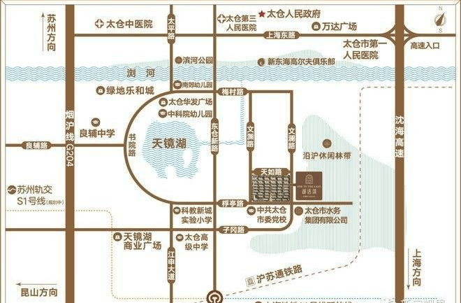 轨道交通:距沪苏通铁路太仓站约3公里,太仓南站约4公里