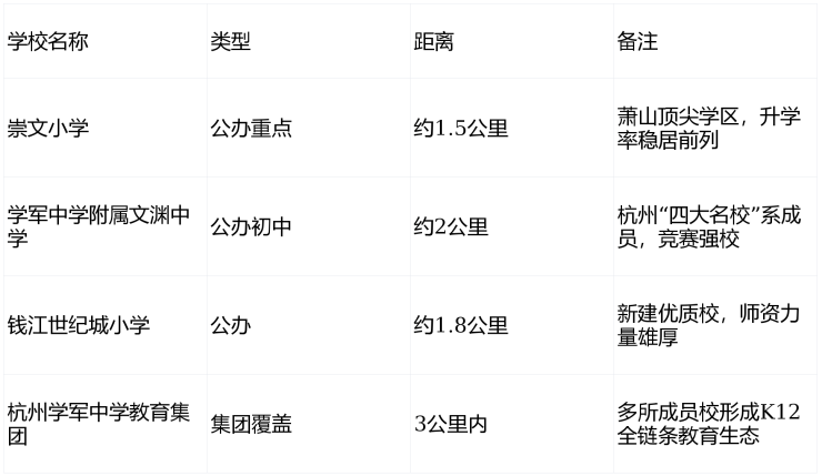 学区政策 :目前为萧山区重点划片,未来有望纳入“奥体教育高地”统一规划,教育资源持续升级。