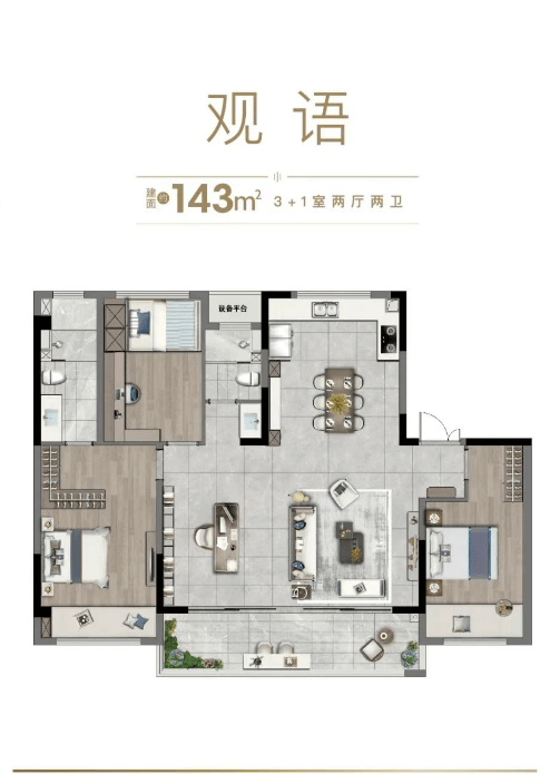 景观方面,项目打造了四季更替的“花溪水轴十二雅趣”,并布局于各个楼栋之间。每栋洋房均层次丰富的景观重重围合,推窗而望,目之所及皆为风景。内外交织的自然臻境,满足城市高阶人群的改善向往。