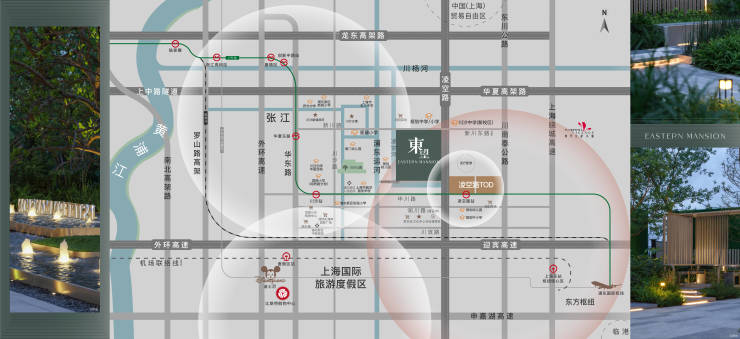 道路:北接华夏高架,南望迪士尼度假区,东西向串联张江科学城与浦东国际机场