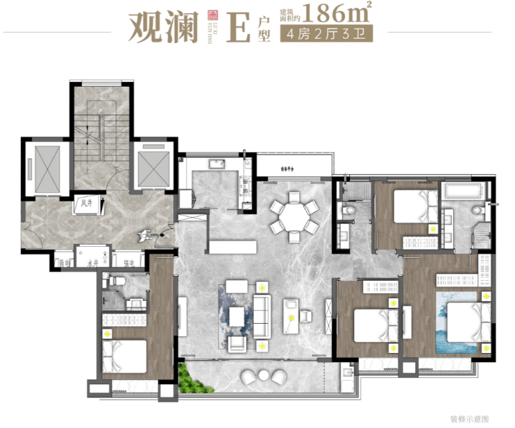 186㎡四室两厅三卫: